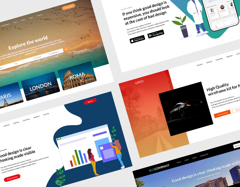 Some examples on how you can use Rocketwireframe to design sections